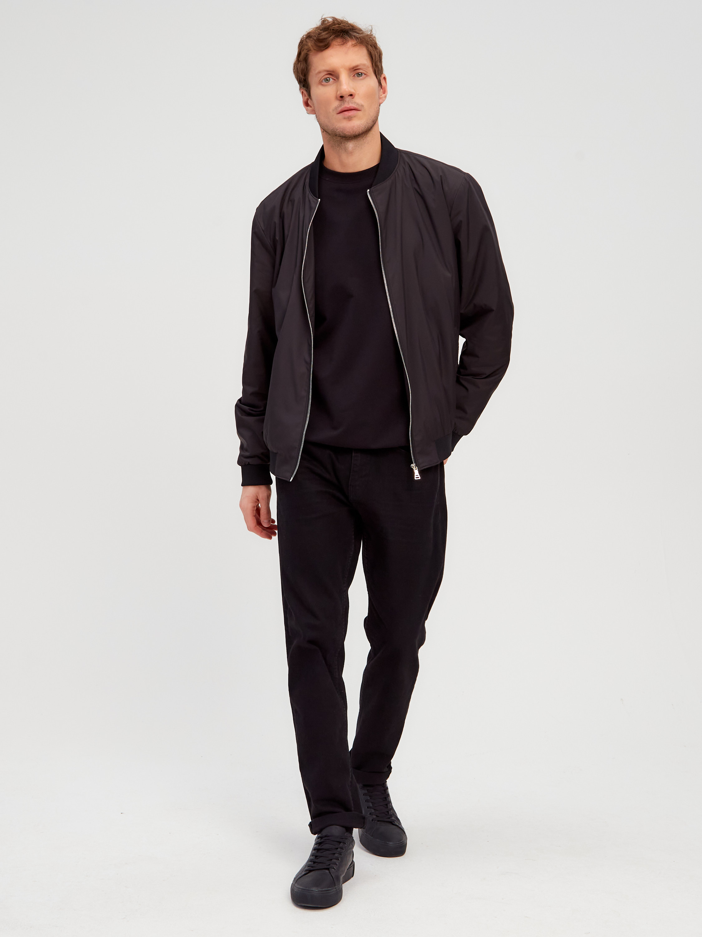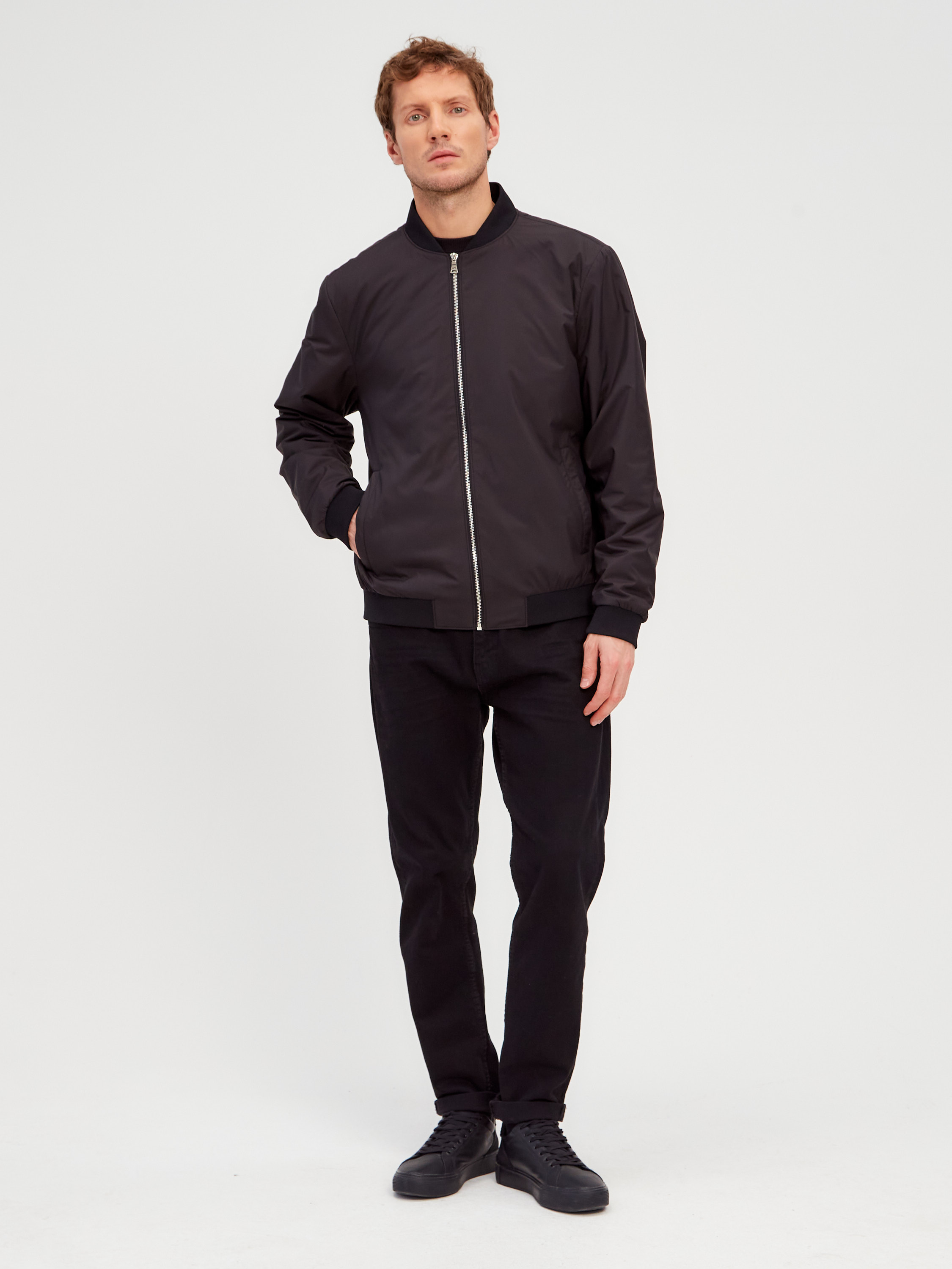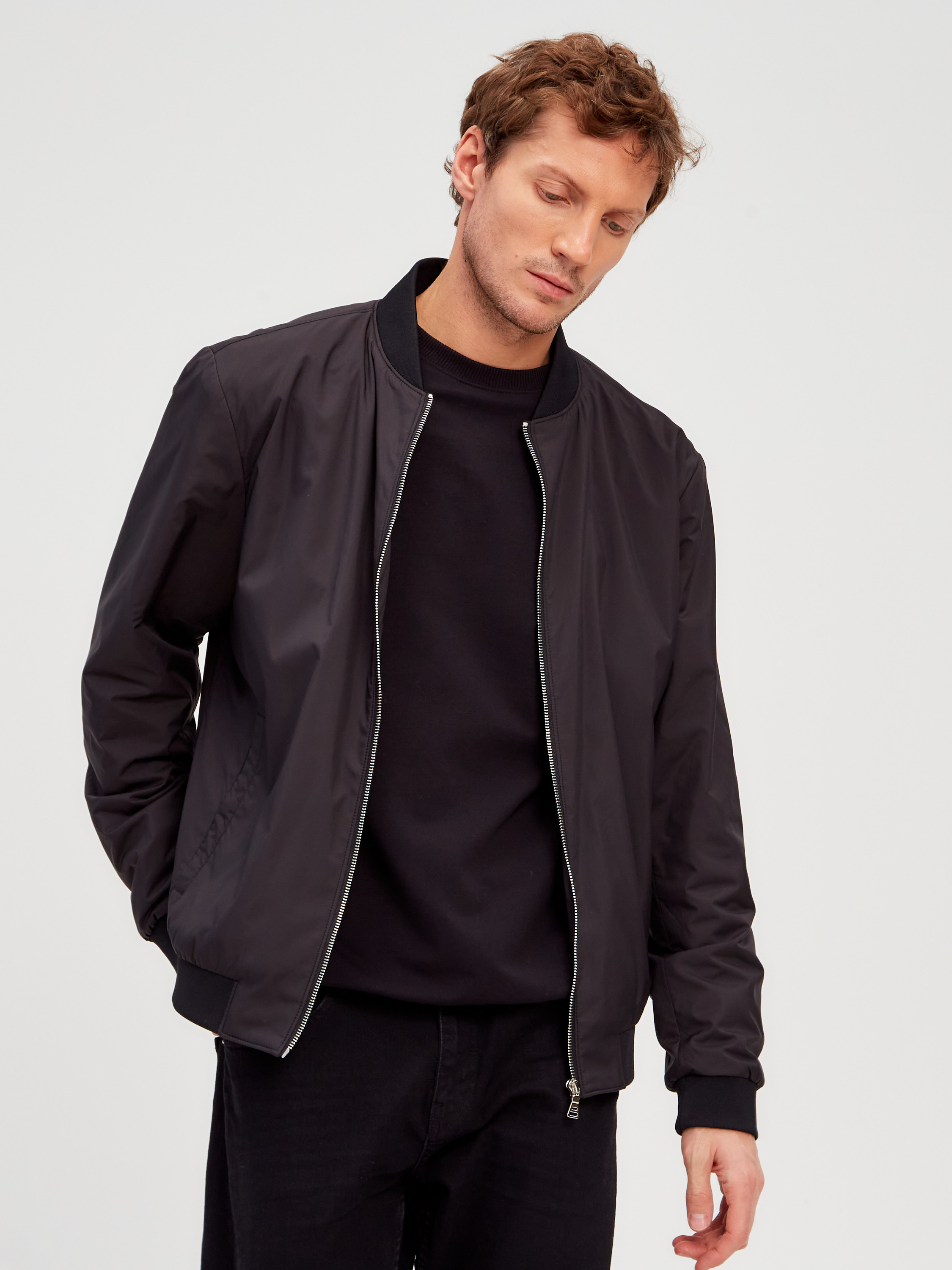 Легкая куртка в синем цвете с характерным воротником и резинками на манжетах и по низу изделия.