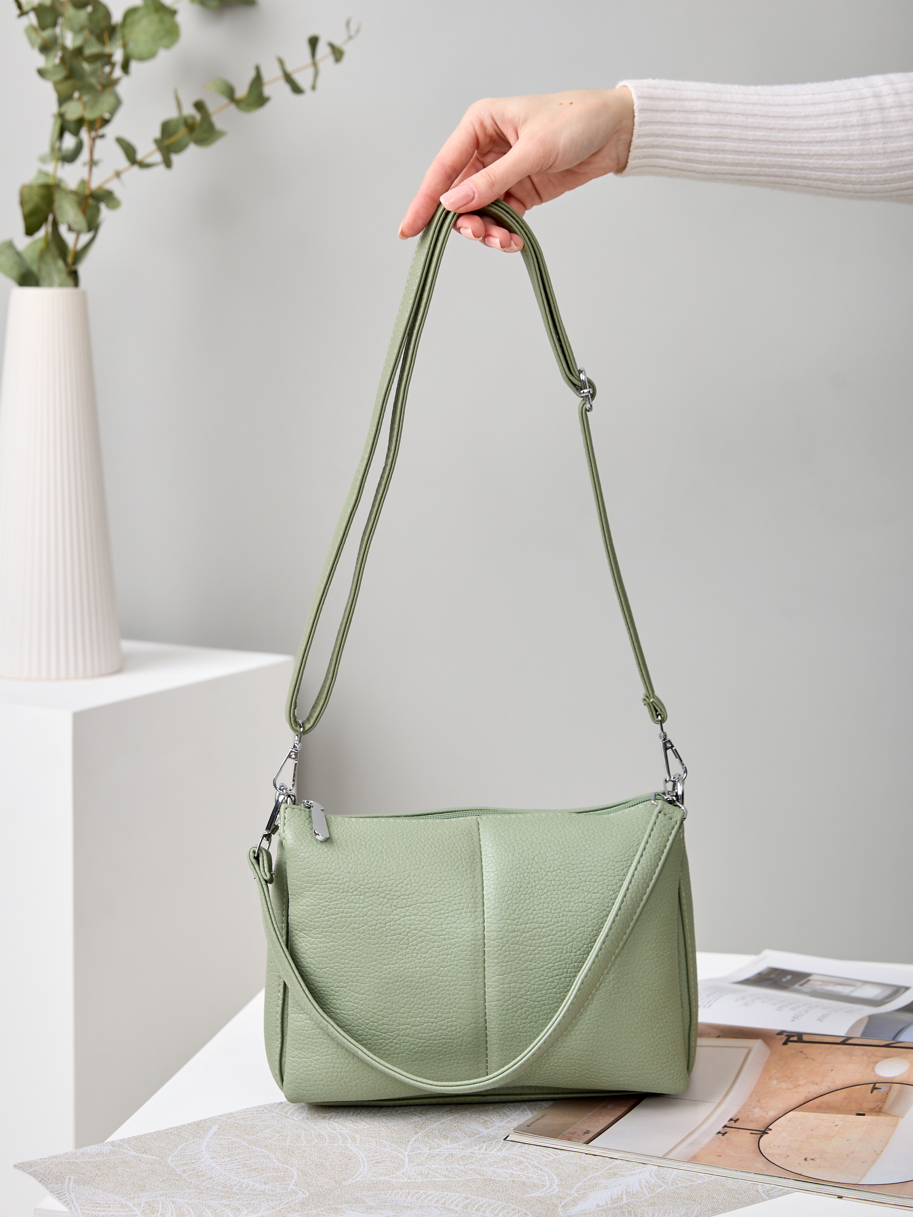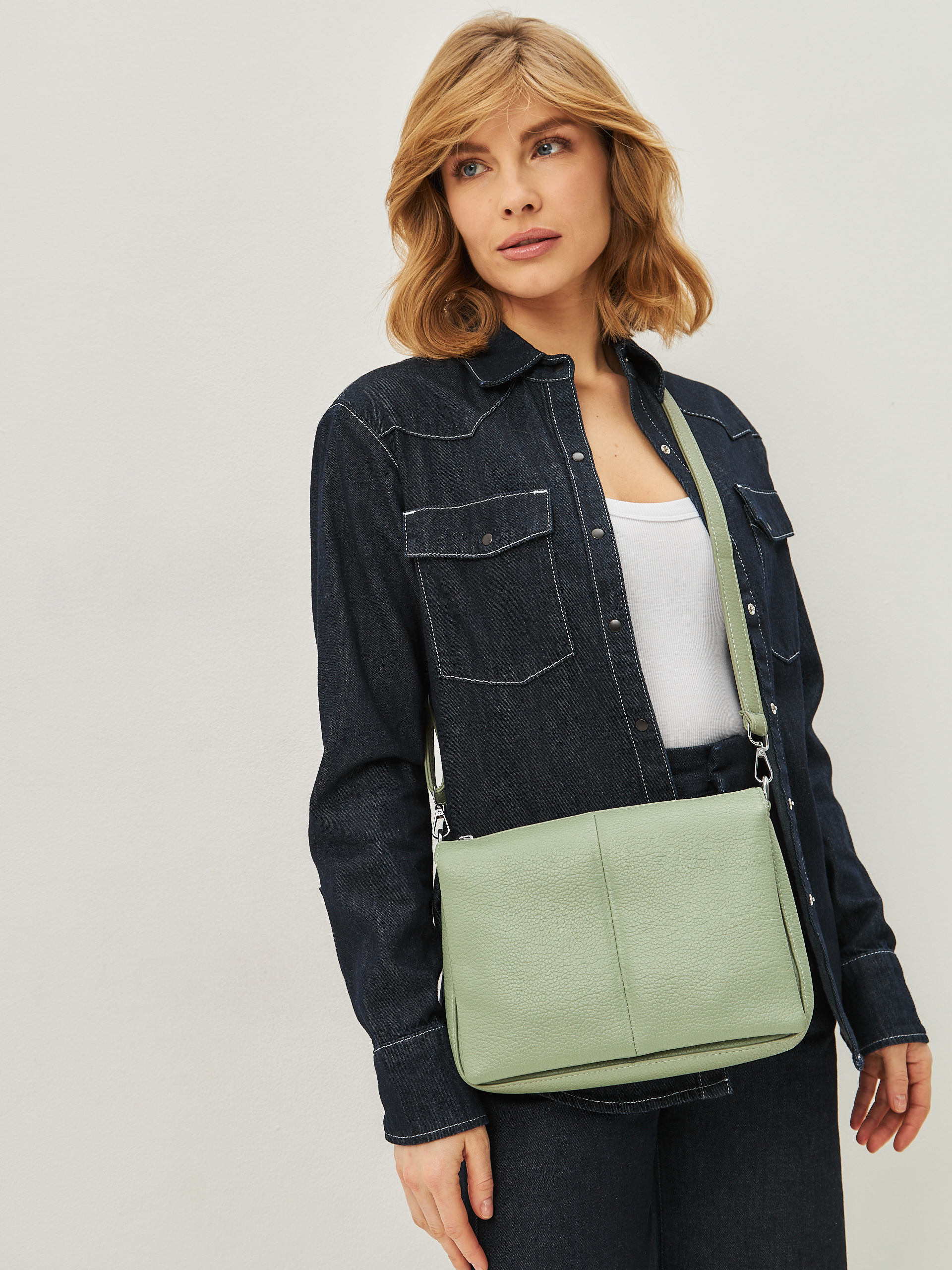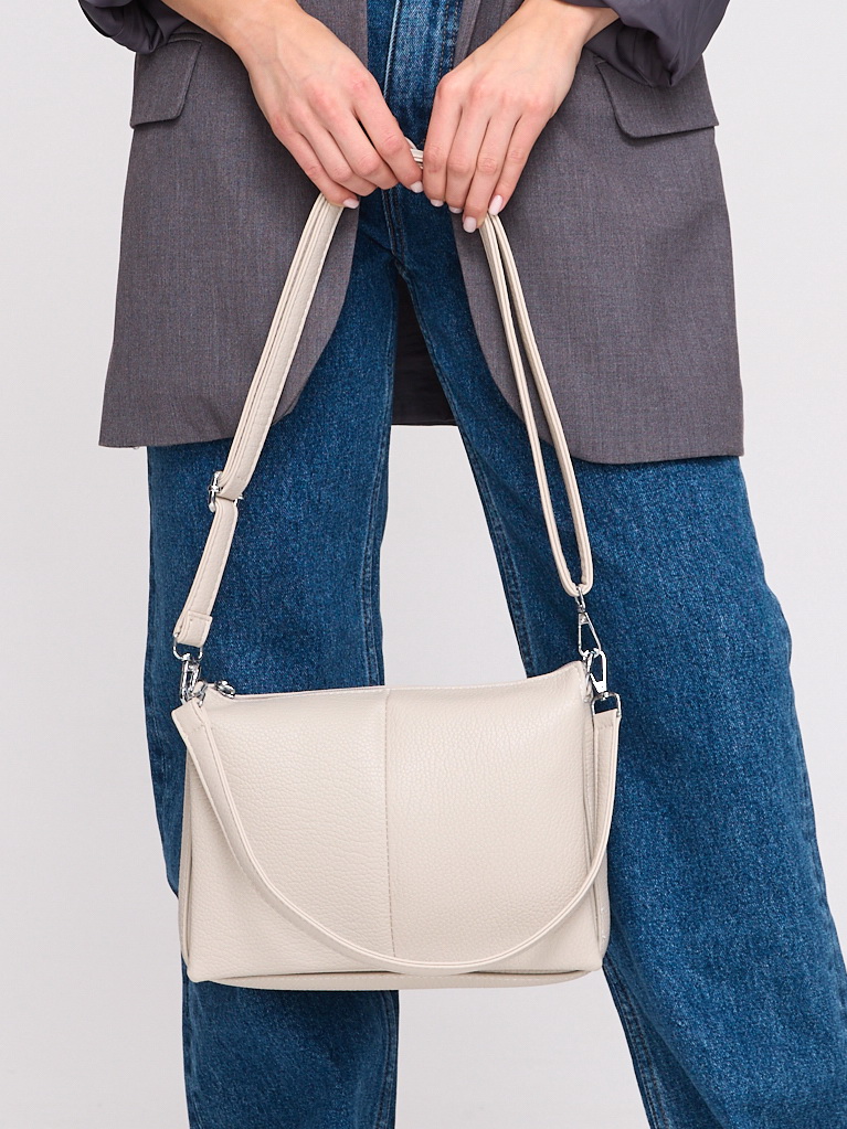 Удобная сумка из натуральной кожи - отличный аксессуар для весенне-летнего гардероба. Детали: два отделения, застежки-"молнии", съемный плечевой ремень.