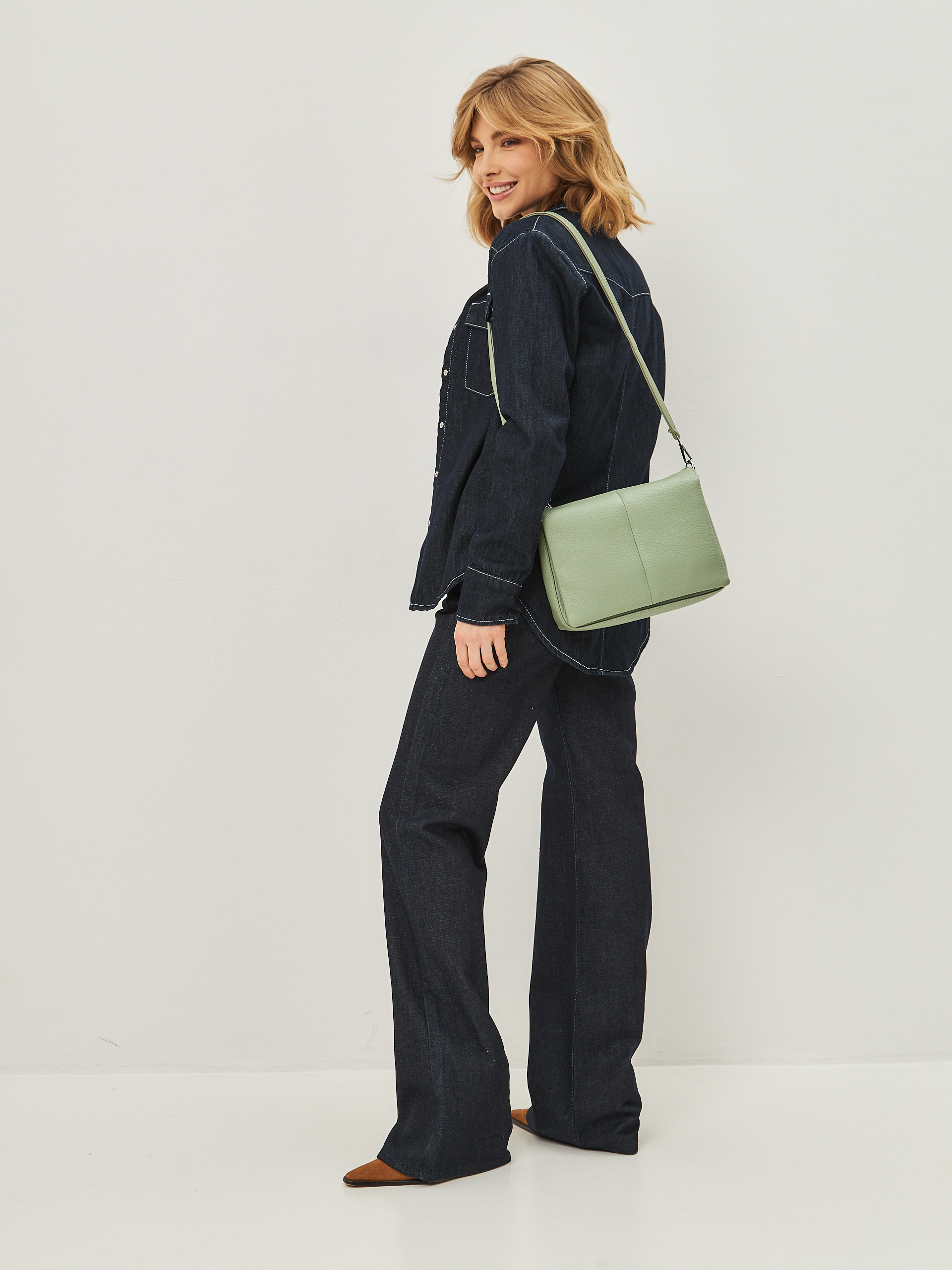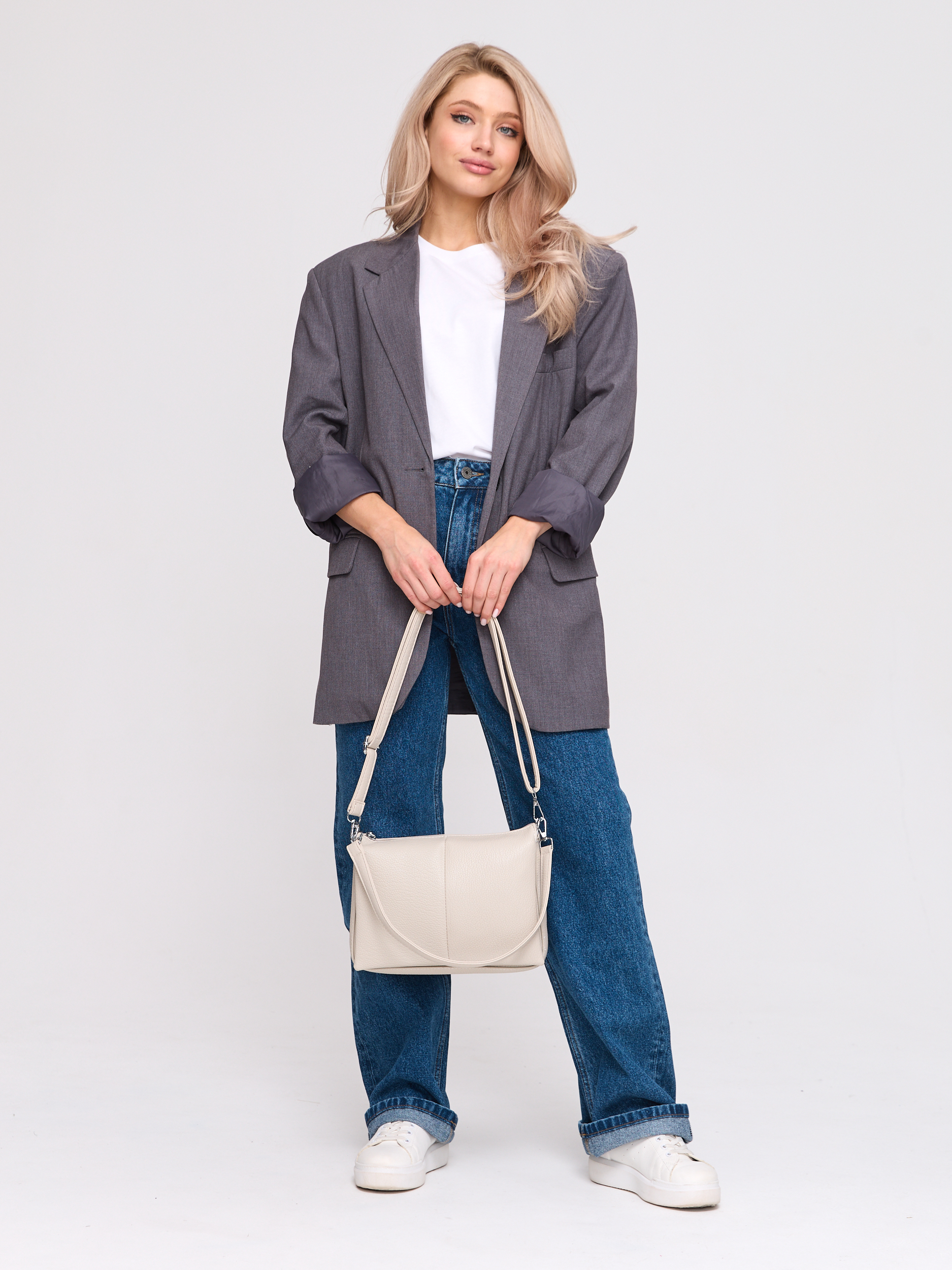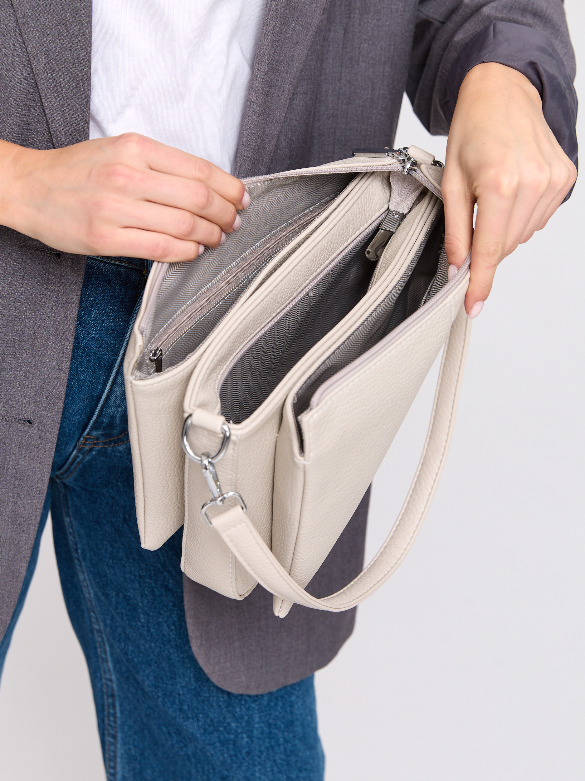 Удобная сумка из натуральной кожи - отличный аксессуар для весенне-летнего гардероба. Детали: два отделения, застежки-"молнии", съемный плечевой ремень.