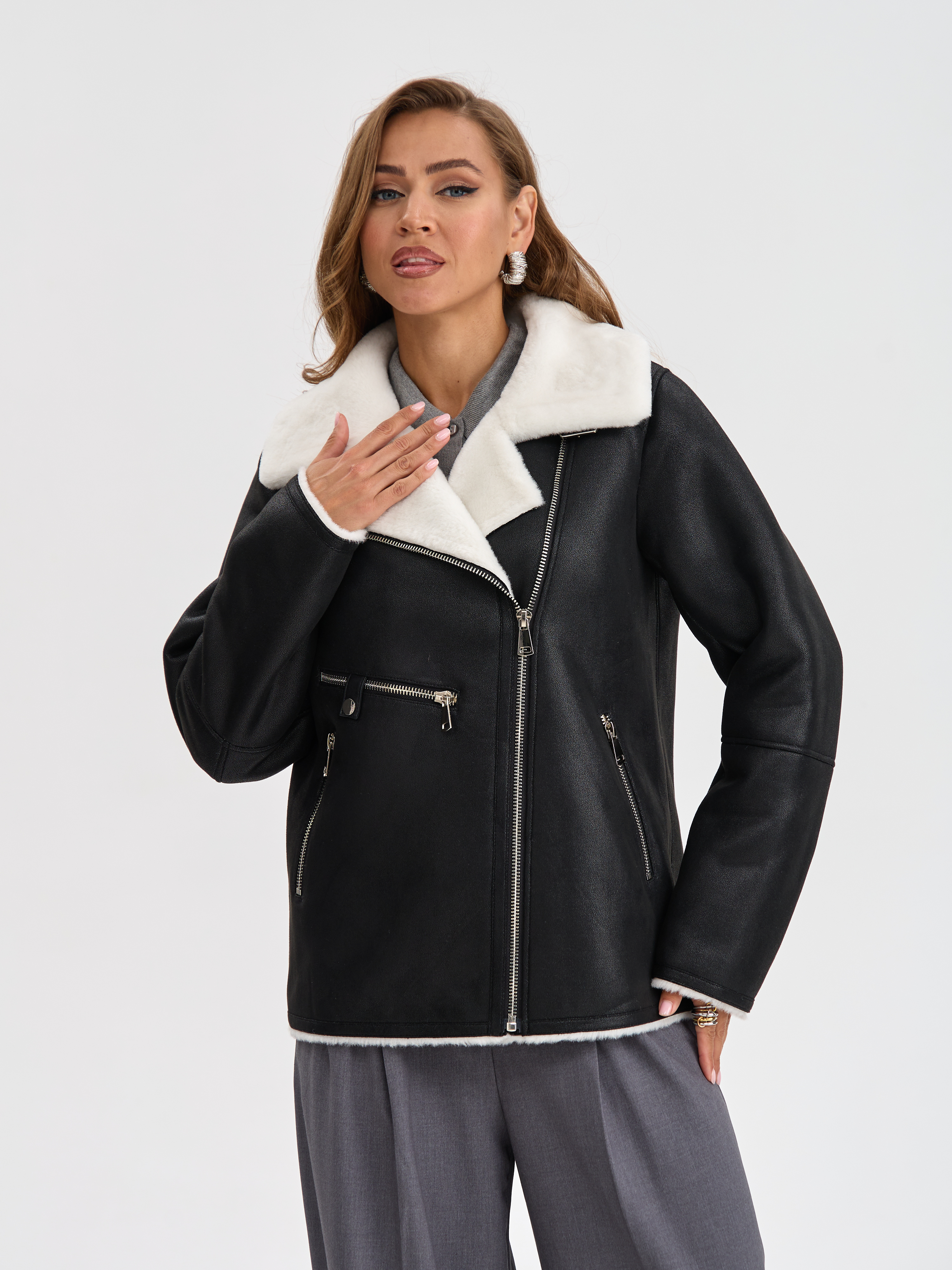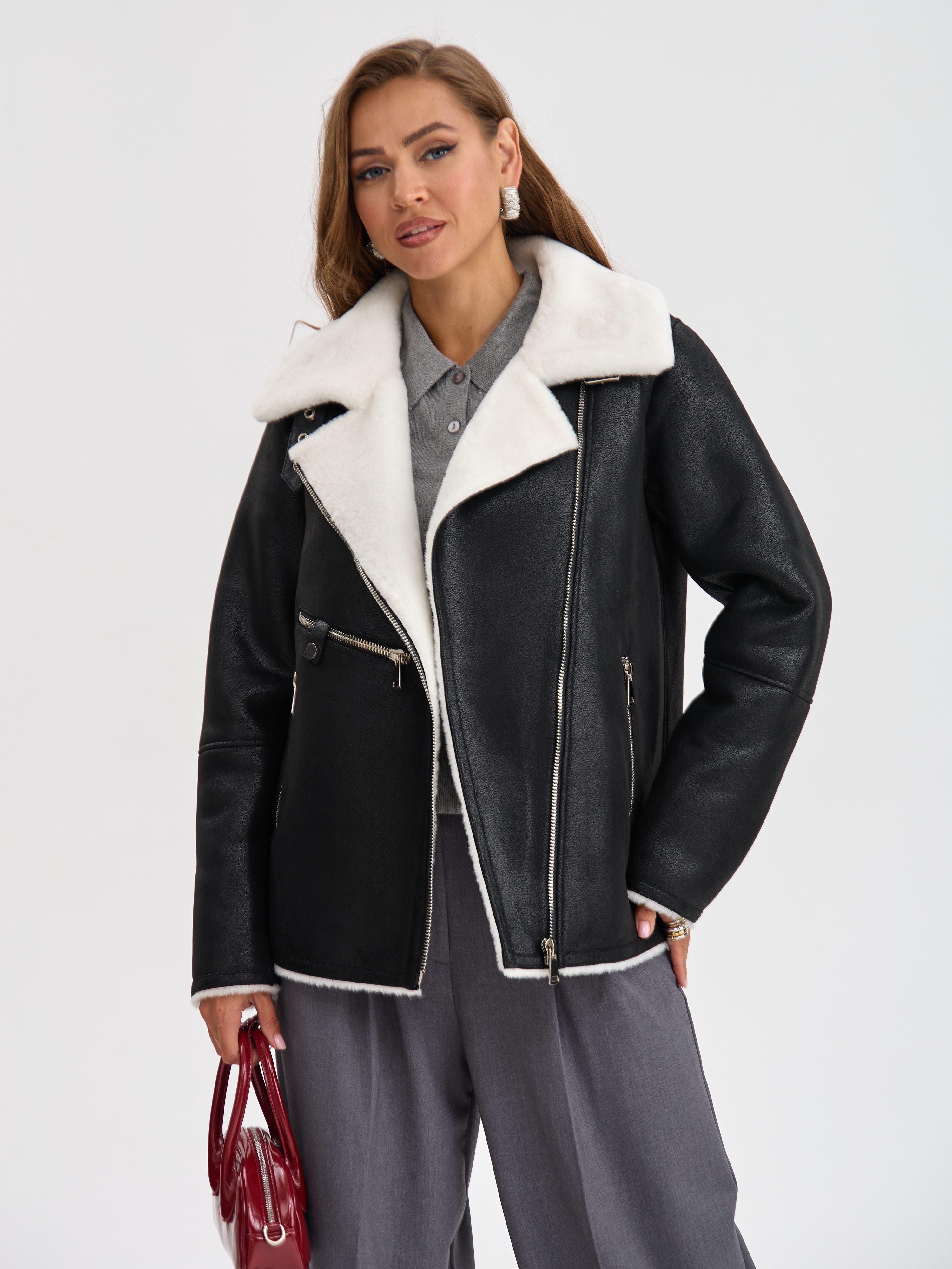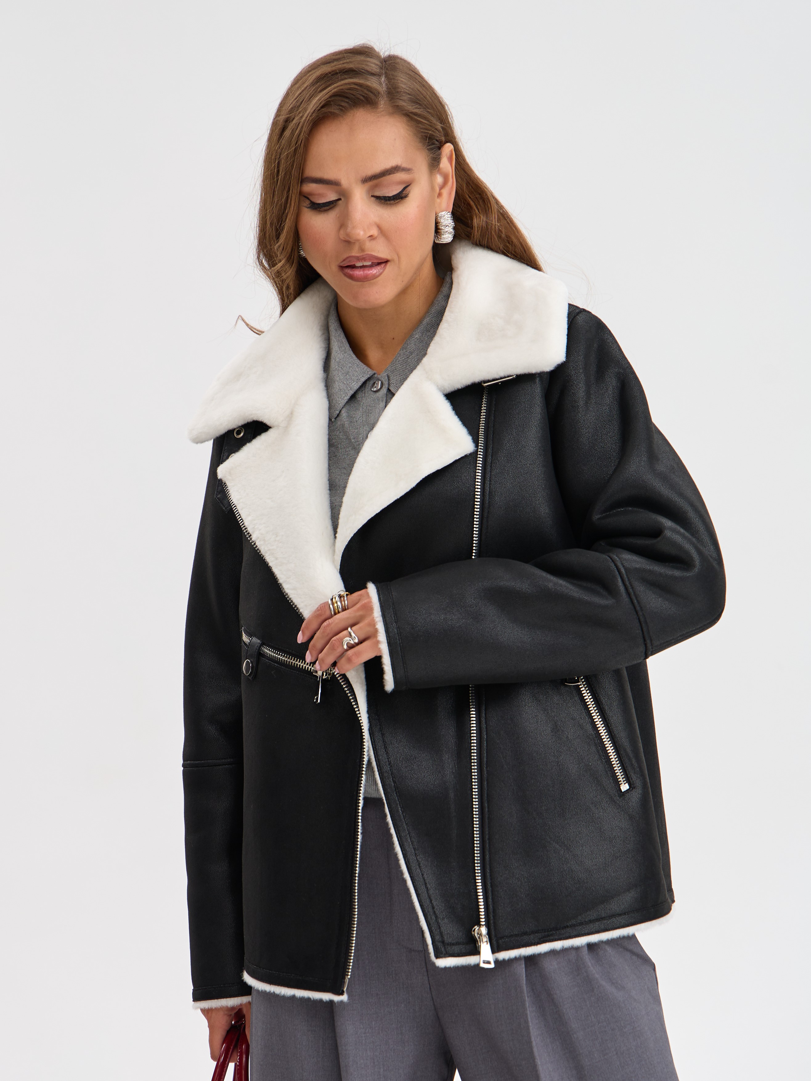 Дубленка LAWINTER, модель 3588, цвет Черно-белый