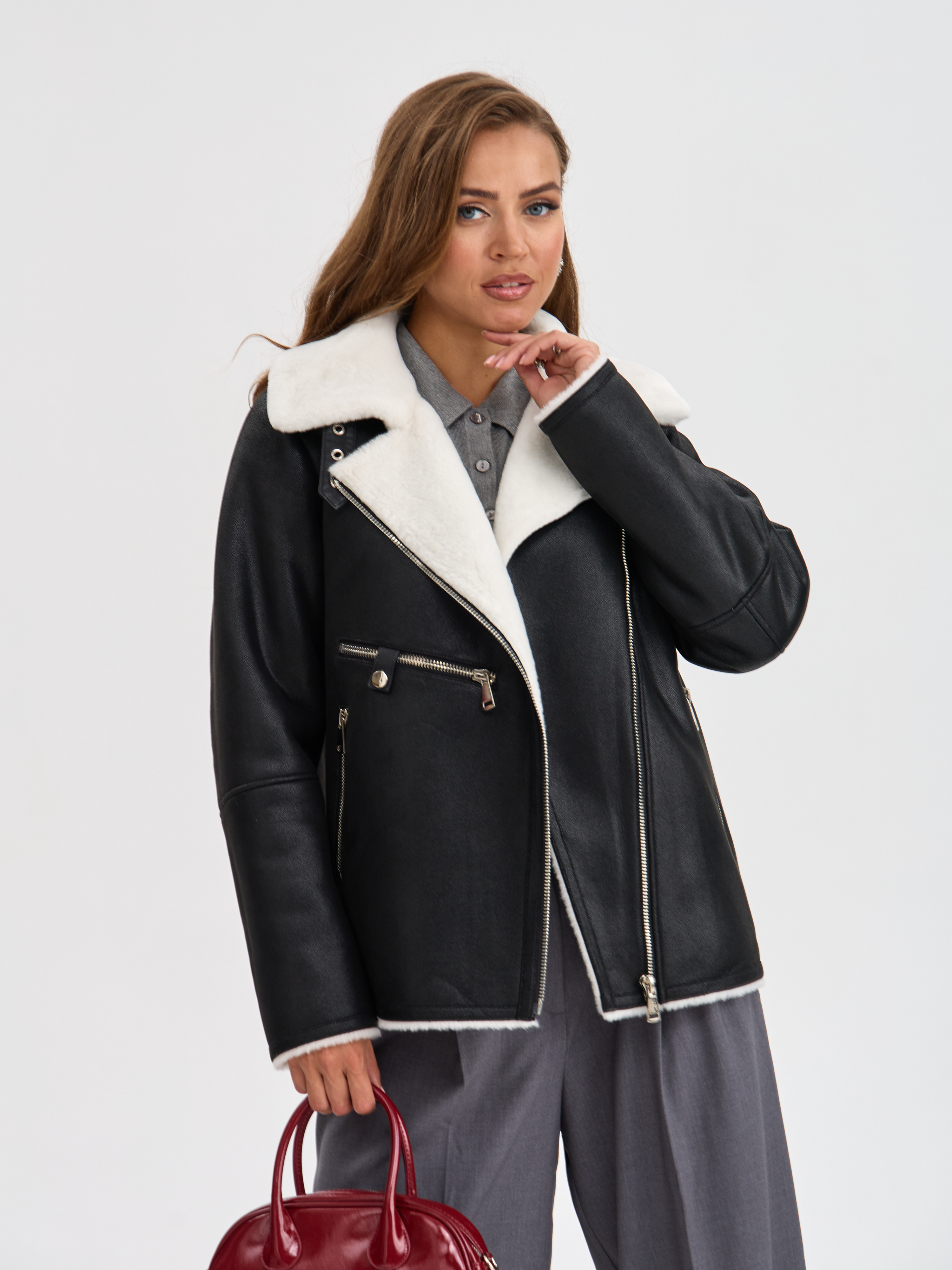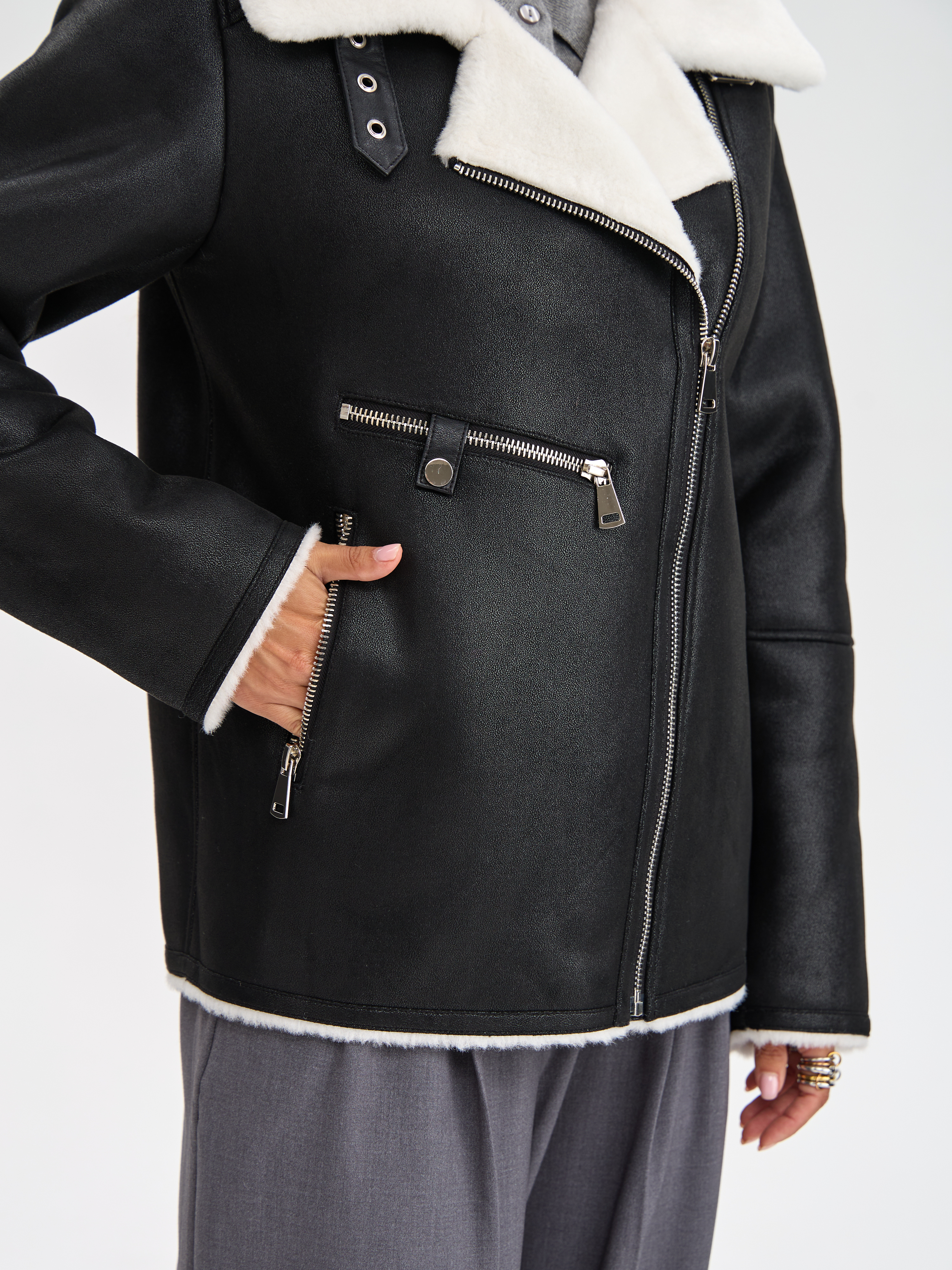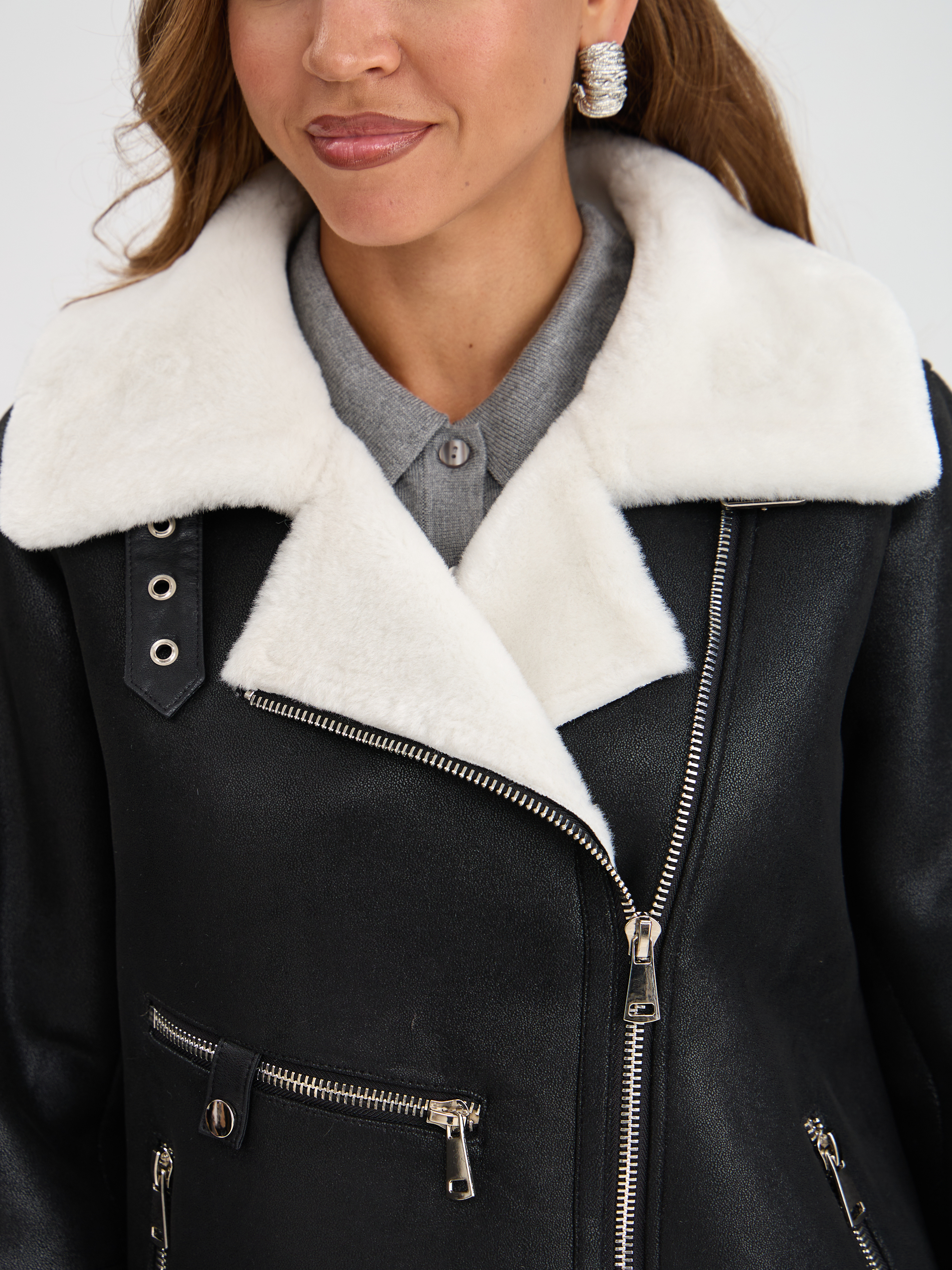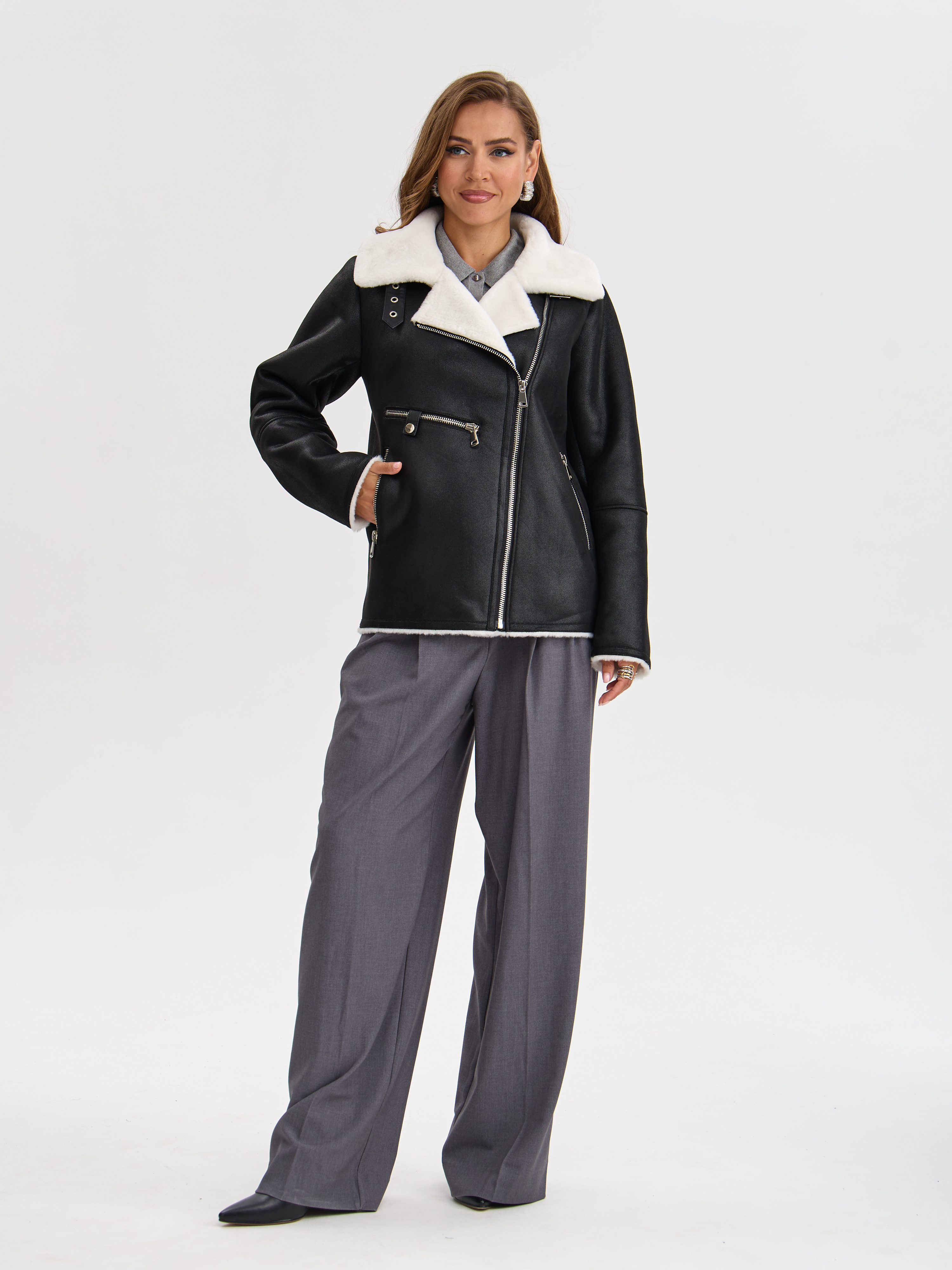 Дубленка LAWINTER, модель 3588, цвет Черно-белый